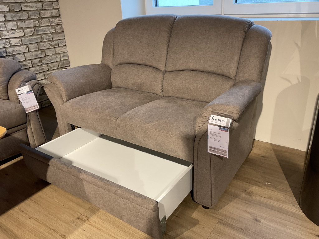 Couchgarnitur best. aus 3-Sitzer Kippsofa,2-Sitzer mit Bettkasten, Sessel auf Rollen,Bezug Miro Mandel, mit Feelkissen, Rücken komplett echt